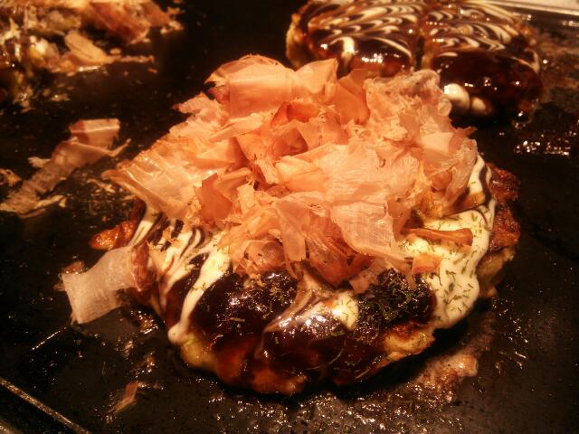 まず、戎橋(有名なグリコの看板のあるところです)から少し歩いたところにあるお好み焼き屋さんにて!